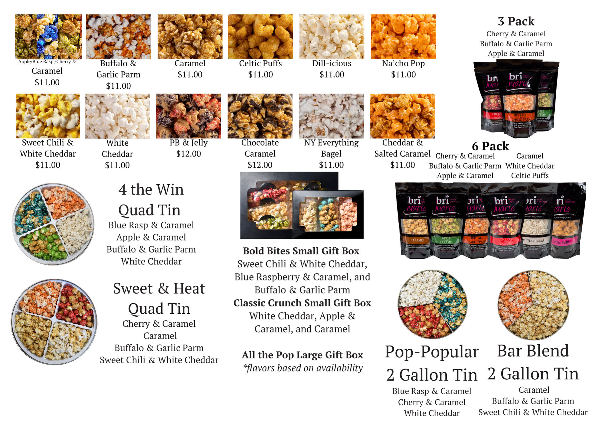 From classics like Caramel and White Cheddar to PB & Jelly, Apple & Caramel, Blue Raspberry & Caramel, and Buffalo & Garlic Parm, there’s a flavor for everyone!