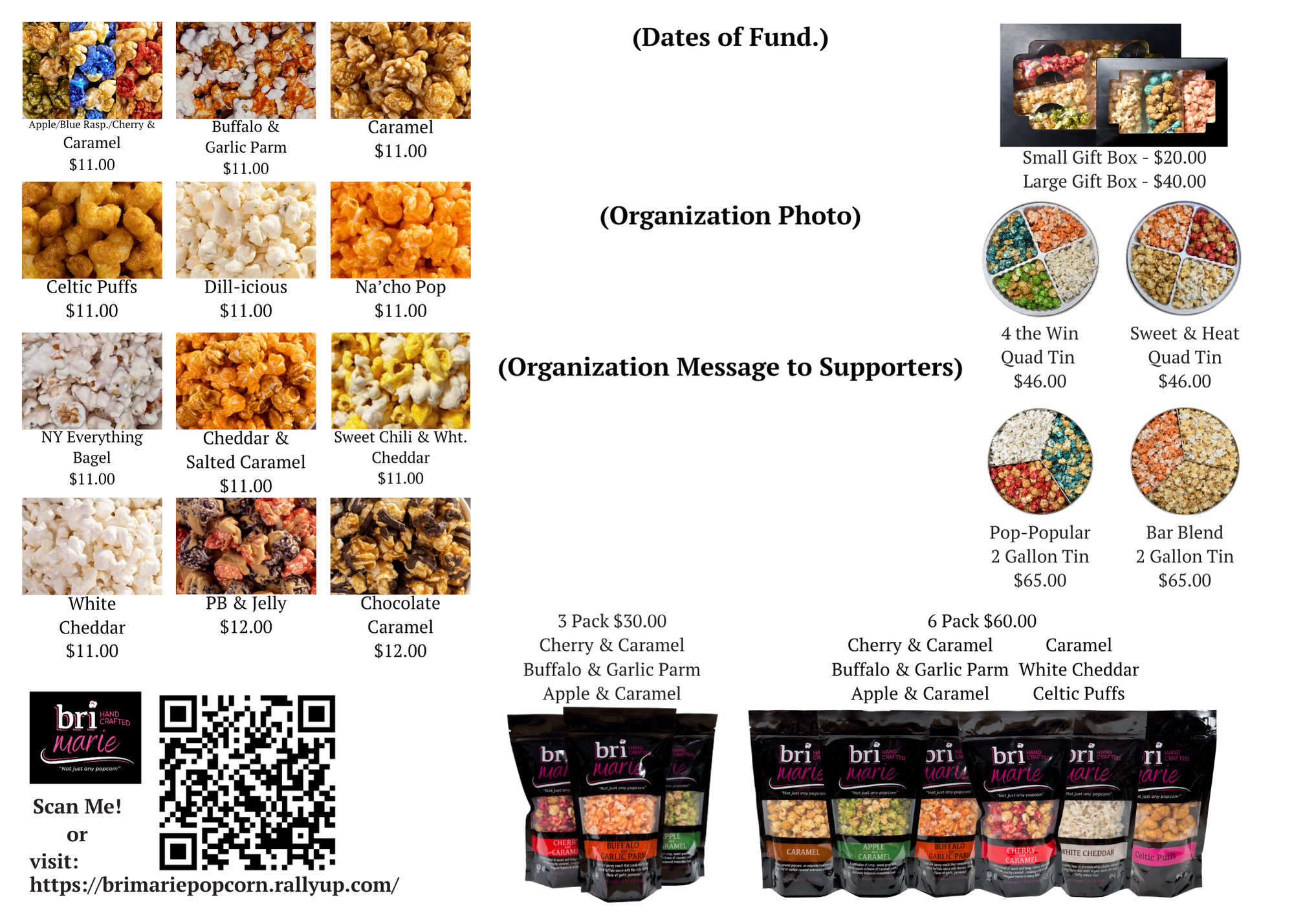 Incorporating Bri Marie Gourmet Popcorn into fundraising efforts brings a unique and delicious element to the experience. Our handcrafted gourmet popcorn offers a special touch that can make the fundraising process more enjoyable for participants and supporters alike. Here are a few more ways to highlight the fun aspect of your fundraising with Bri Marie Gourmet Popcorn.