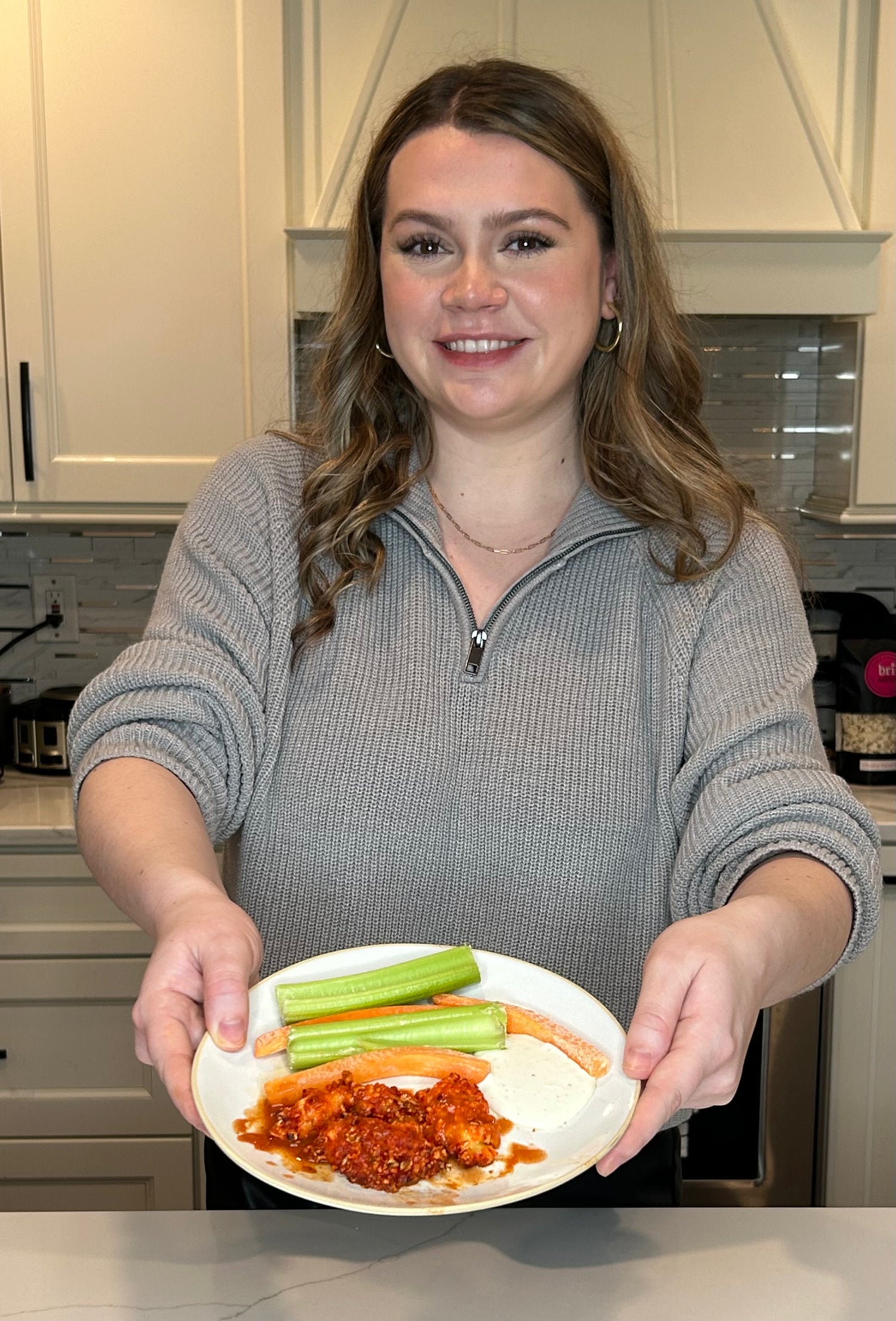 Step 10: When the chicken is done take it out of the oven and plate with desired toppings such as carrots, celery, ranch or blue cheese