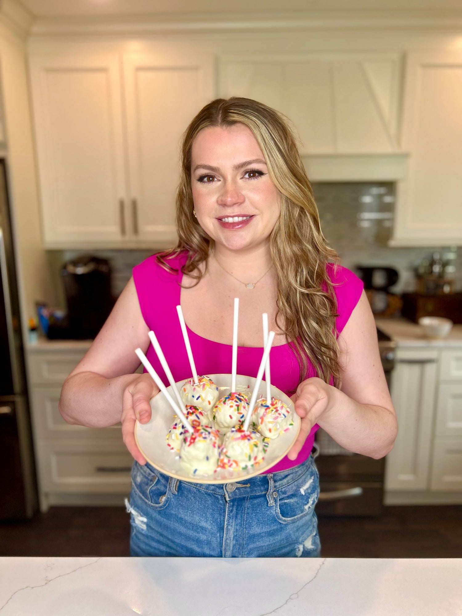 Step 8: Add rainbow sprinkles to the chocolate covered pops before they dry.