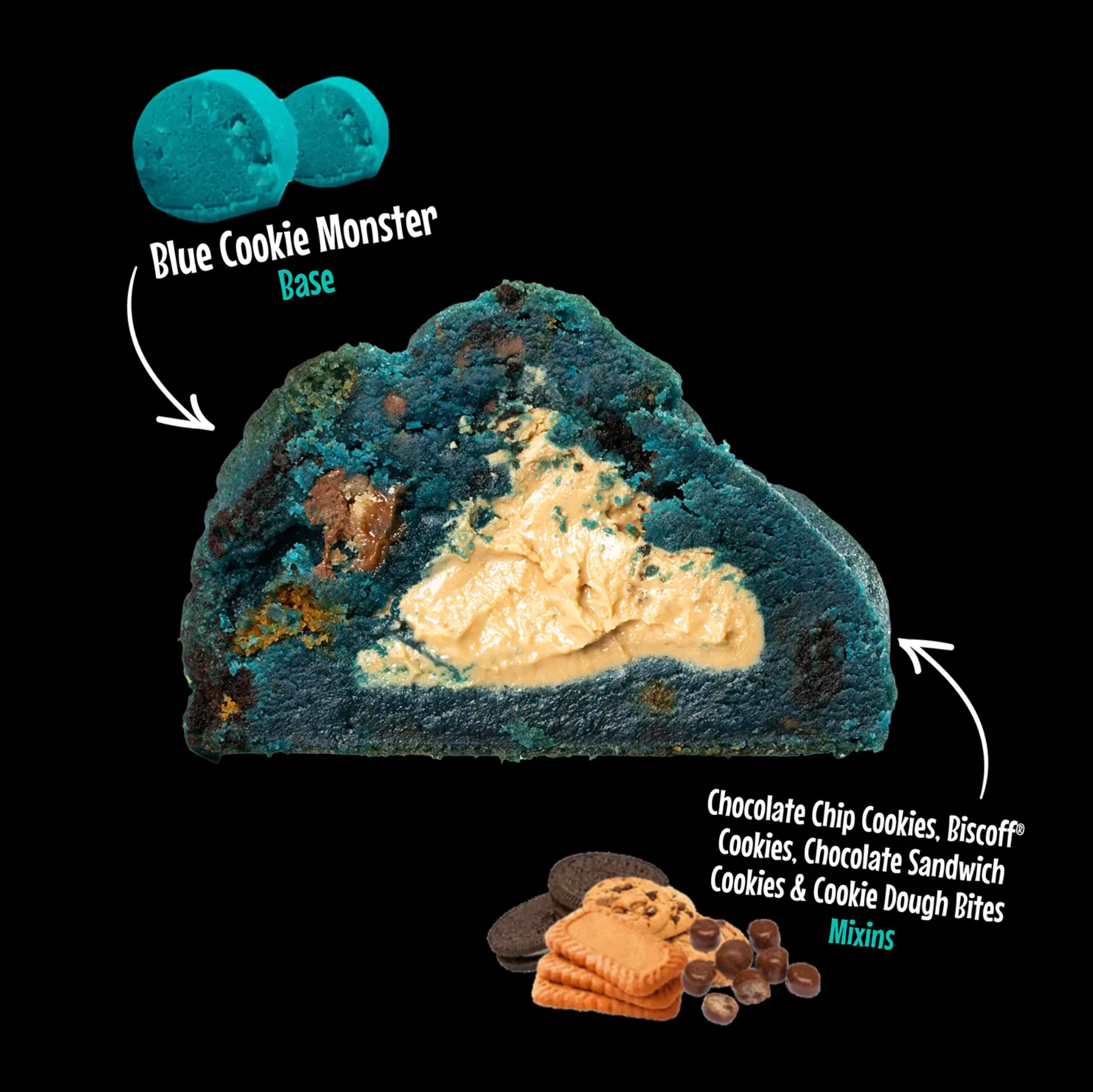We’re excited to offer Cookies Anonymous from Fat & Weird Cookie! This over-the-top creation starts with vibrant blue dough and is generously packed with chocolate chip cookies, cookie butter cookies, chocolate sandwich cookies, and cookie dough bites. At the center, a rich cookie butter icing melts into gooey perfection when warmed. It’s the ultimate cookie mashup—bold, indulgent, and made for anyone who believes there’s no such thing as too many cookies.