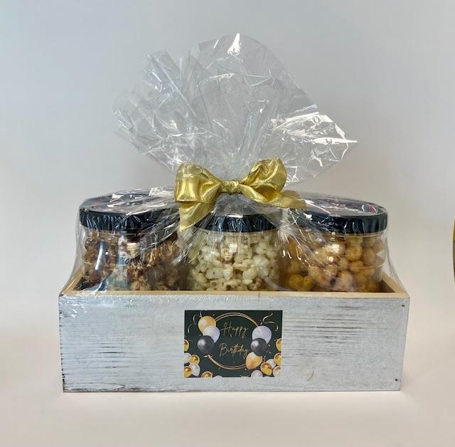 Inside the Happy Birthday Crate, you'll find an array of our most popular popcorn flavors, each carefully crafted to satisfy even the most discerning taste buds. Imagine the excitement of indulging in classic buttery popcorn, the sweetness of caramel drizzle, the savory goodness of cheddar cheese, or the perfect balance of sweet and salty kettle corn. Our diverse selection ensures there's something for everyone to enjoy.